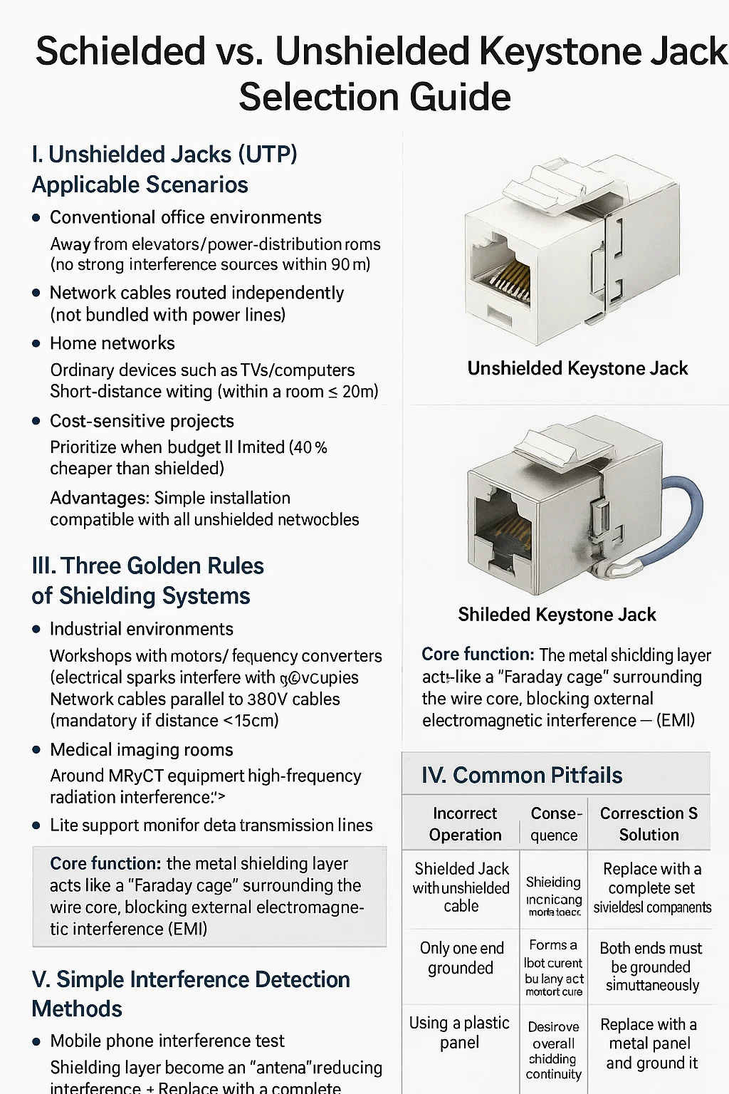 | Utilisation de prises blindées avec un câble UTP | Le bouclier agit comme une antenne, attirant les interférences | Remplacez l'ensemble du parcours par des composants blindés de câble STP/FTP |