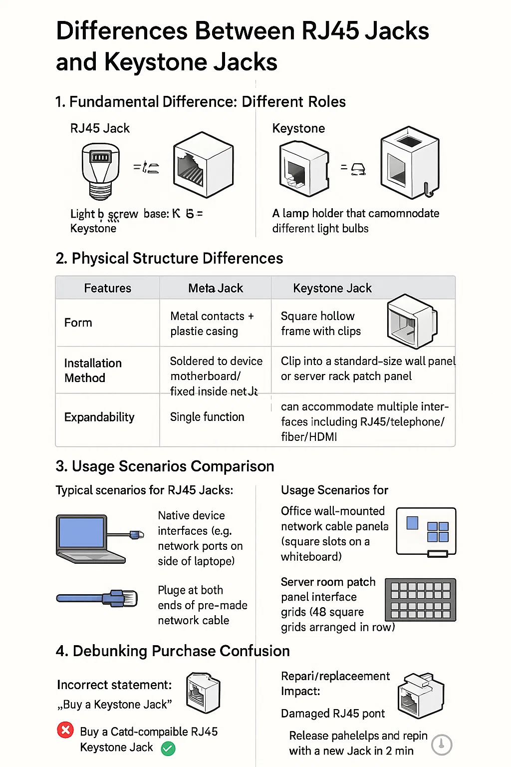 Déclaration incorrecte : « Achetez un Keystone Jack » ** (Keystone est une base, pas un Jack en soi)